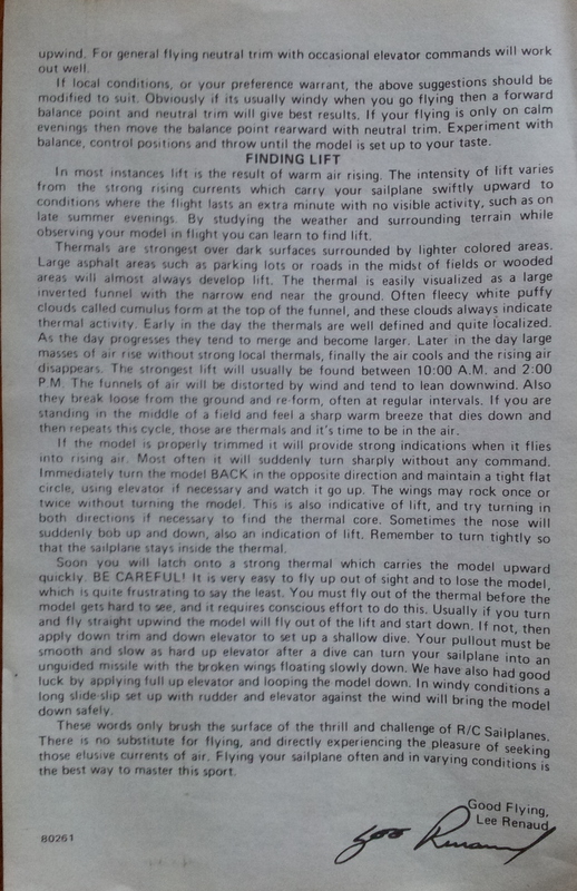 Sept 25 2015 Posted on 25/09/201525/09/2015 by sailplane by sailplane 1,510 total views, 1 views today Flying RC Sailplanes I photoged these from a pamphlet in an older Airtronics Kit All good stuff, ultimately though there’s to much to read, the best bet is to Fly Fly:):) Post navigation Show and Shine, Sept 19 2015 Ladder EventBaby Albatross Build Continues Oct 03