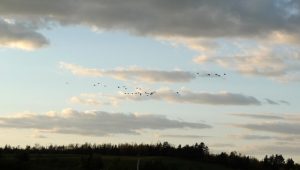 Lots of puffy clouds with a sprinkling of blue in between, the geese are on the move as well
