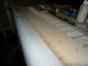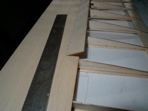 I added the lower sheeting as I built up the tip panels, and need to shave some material away from the Leading edge Balsa