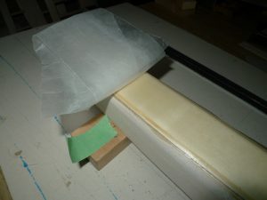 A couple weeks later and I have some cloth on the bottom of the fuselage and some more sanding done