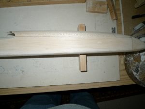 Hollowed nose block as well as Gauge for root rib angles, NOTE, these angles are my interpretation of what I found with the KIt, and Info on the Plans, later I Decided the Polyhedral was incorrect and changed the tip panel Joiners, even the center could be a bit more